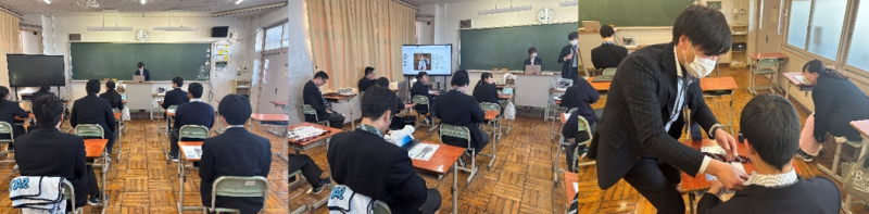 1月14日(水)、第3学年の生徒を対象に、紳士服のコナカ下妻店の方をお招きし、スーツ着こなし講座を行いました。スーツ、フォーマルの着こなし方、第一印象の大切さなどの説明があり、後半ではネクタイの結び方の実習が行われました。卒業を控えた生徒にとって社会で役立てられるような良い機会になりました。
