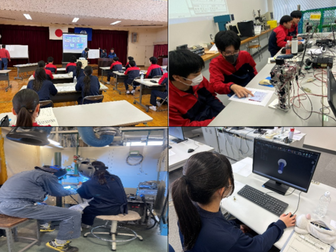 筑西産業技術専門学院で3つのコース(ロボットプログラミング、CADを使ってモデリング、溶接体験)に分かれ、ものづくり体験を行いました。生徒達はものづくりの楽しさや技能習得の喜びを体験し、将来について考えることができました。