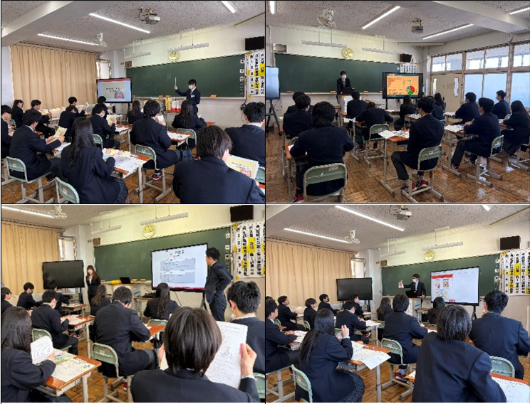 (株)正栄デリシィ、(株)廣澤精機製作所、フジパン(株)、関彰商事株式会社の担当者にご来校いただき、社会人として求められる人物像や仕事のやりがいと魅力などを伺いました。産業や職業に関するさまざまな情報を得ることができ、職業意識の形成につながりました。